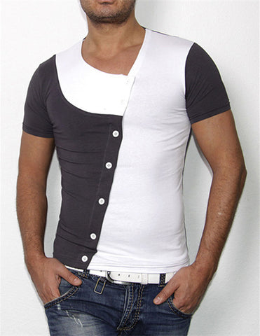 2015 New Arrival Slanting Patchwork Cotton Long Sleeve Men T-Shirt Free Shipping Solid T Shirt Drop Shipping Slim 4 Color