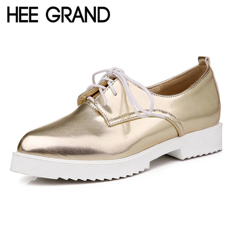 HEE GRAND Oxfords Gold Silver Low Heels Shoes Woman British Style Creepers Patent Leather Pumps Casual Women Shoes XWD4206